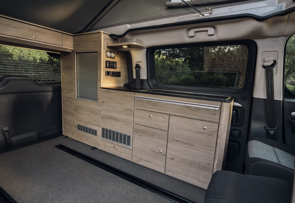 Zabudowę kuchenną i toalety można zdemontować, dzięki czemu jest to pojazd nadający się do codziennego użytkowania, którym można przewozić 4 osoby i wiele różnych przedmiotów. Dwoje przesuwnych drzwi bocznych można sterować elektrycznie, co ułatwia wchodzenie do samochodu.