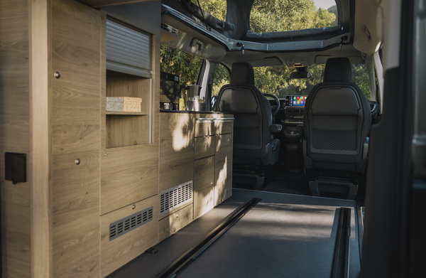 - Składany dach w kolorze nadwozia jest oferowany w standardzie i dodaje elegancji oraz zapewnia mnóstwo miejsca nad głową. W strefie dziennej można stanąć swobodnie i są aż 4 miejsca do spania. Kanapa w drugim rzędzie, mogąca pomieścić 2 osoby, jest przesuwana i rozkładana, tworząc miejsce do spania o szerokości 1,15 m i długości 1,90 m. Kanapę można zdemontować, jeśli klient chce mieć więcej miejsca w środku. Na górze znajduje się łóżko o szerokości 1,20 m i długości 1,95 m, gdzie można spać podziwiając gwiazdy. Materac został zaprojektowany tak, aby zajmował jak najmniej miejsca, zapewniając jednocześnie komfortowy sen. Osoby śpiące w dolnej części mogą cieszyć się otwieraną tylną szybą, pozwalającą zasnąć jak najbliżej natury, a także zasłonami izolującymi na przedniej szybie i oknach bocznych. Z kolei osoby śpiące w górnej części łóżka mogą skorzystać z wbudowanych żaluzji i świetlików, aby sterować wentylacją i światłem.